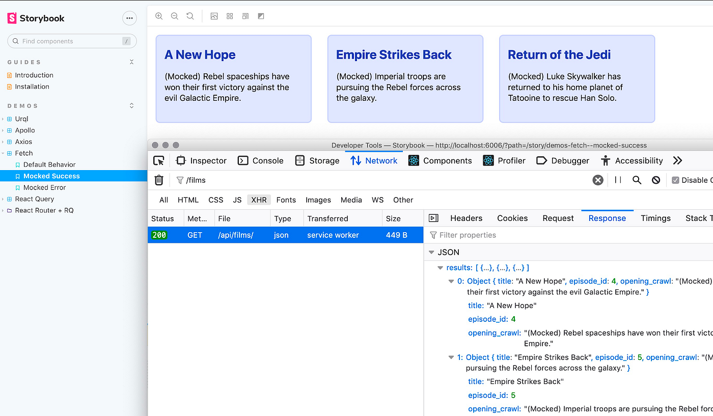 I created the MSW addon to simplify mocking API requests for stories. It doesn’t depend on any UI framework or data fetching library. Even GraphQL requests can be mocked. Now your app components can share the benefits of the Storybook ecosystem no matter what tech stack you use.
